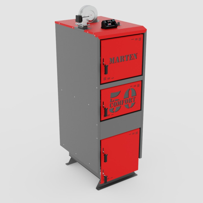 Marten Comfort MC-50 оснащений польським блоком управління, що гарантує високу точність і стабільність роботи. Котли виробляються з використанням сучасного обладнання і кращих матеріалів, що забезпечує високу якість зварних швів та довговічність. Коефіцієнт корисної дії (ККД) котла досягає 85%, що робить його економічним у використанні. Розрахунковий термін служби котла – 15 років, з трирічною гарантією від виробника.